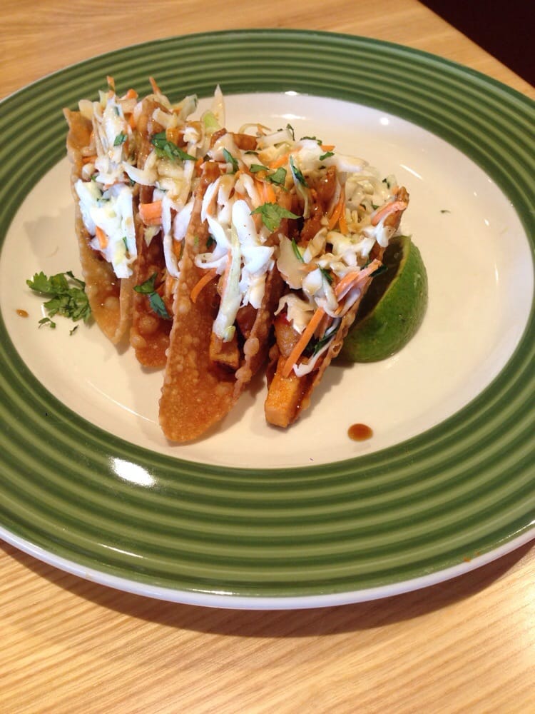Top with 1 tbsp of taco meat and 1 tbsp of shredded cheese. In a large skillet, combine stir fry sauce, teriyaki sauce, soy sauce, and ¾ of the dressing. Repeat the layers again with a wonton wrapper, refried beans, tortilla chips, taco meat, and cheese. Brew pub pretzels + beer cheese dip : Applebee'®s wonton tacos offer a unique recipe of tangy grilled chicken, sweet asian chile sauce & dumpling sauce stuffed into crispy wonton shell. Place into the hot oil and fry until golden brown on one side. Apr 25, 2012 · place one wonton wrapper in the bottom of each muffin cup. Drape over pan to form a shell. Remove cooked chicken with a slotted spoon to a bowl and set aside. A celebration of flavor, this dish delivers on every level. Crush one tortilla chip on top of the beans. Bake for 5 minutes or until golden brown. Preheat oven to 350 degrees f.